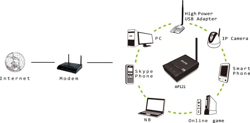 ALFA Network AP121 Router, 1 x WAN, 1 x LAN en PoE, er wordt bij deze router een 12v DC voedingsadapter meegeleverd. Met de Alfa Network AP121U maak je snell en eenvoudige een netwerk met een 802.11b/g/n WiFi functionaliteit. De Alfa Network AP121U is voorzien van WDS en is dus uitermate geschikt om een draadloos signaal te repeaten/versterken.