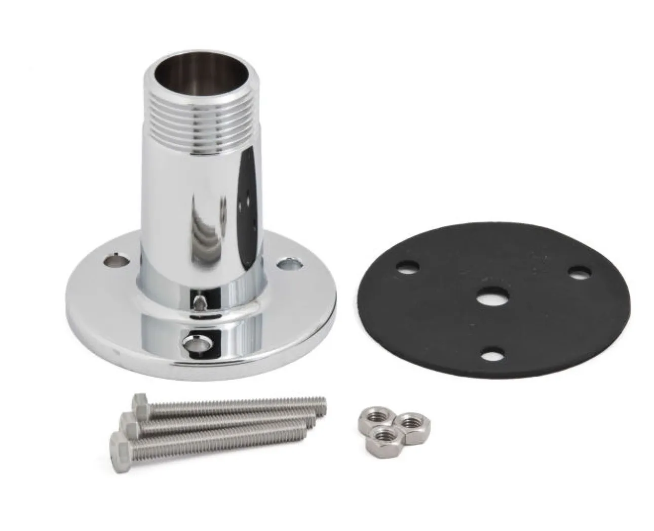 Deze AC Antennas dekdoorvoer is bedoeld voor een nette en beschermde montage van een maritieme antenne waarbij de coaxkabel door het dek of de wand wordt gevoerd en binnen de mount beschermd blijft. Dat maakt deze uitvoering geschikt voor installaties waar een strakke afwerking, goede kabelgeleiding en een robuuste mechanische bevestiging belangrijk zijn. De mount wordt compleet geleverd met EPDM rubber afdichting en M6 x 50 mm bouten.