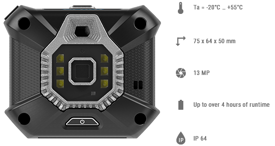 Ecom Cube 800 met dubbele camera's aan de binnenkant kunnen gebruikers kiezen voor optische en thermische cameramodus. De geïntegreerde warmtebeeldcamera biedt statusanalyse van de infrastructuur en trendinformatie. De optische camera biedt video en foto's in HD. De geïntegreerde warmtebeeldcamera biedt een analyse van de gezondheid van de infrastructuur en trendinformatie, terwijl de optische camera HD-video en -beelden levert. De geïntegreerde lichtring en laserrichtwijzer zorgen voor visuals van hoge kwaliteit. Met de automatische magnetische bevestiging kunt u de CUBE 800 eenvoudig en veilig bevestigen op een helm of hoofdband.