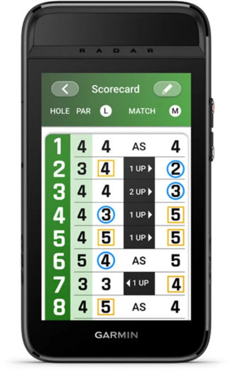 Werkt met de Garmin Golf app (via Bluetooth). Ondersteunt koppeling met optionele Garmin Approach CT10 clubtracking-sensoren voor automatische shot- en clubregistratie.