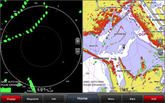 Via een enkele radarantenne kunt u beelden op uw kaartplotter naast elkaar weergeven in gesplitste weergave, met onafhankelijke instelling van bereik en bediening op korte of lange afstanden. U kunt een van beide of beide bereiken ook weergeven als kaartoverlay.