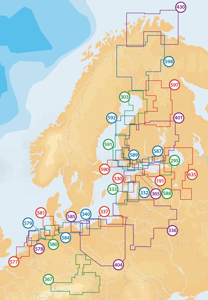 Inclusief 12 maanden gratis online updates (Freshest Data). Hieronder ziet u een overzichtskaart met de gebieden die te downloaden zijn met de Navionics+ Small kaart. Ieder nummer vertegenwoordigd de kaart die u kan downloaden op deze blanco kaart.