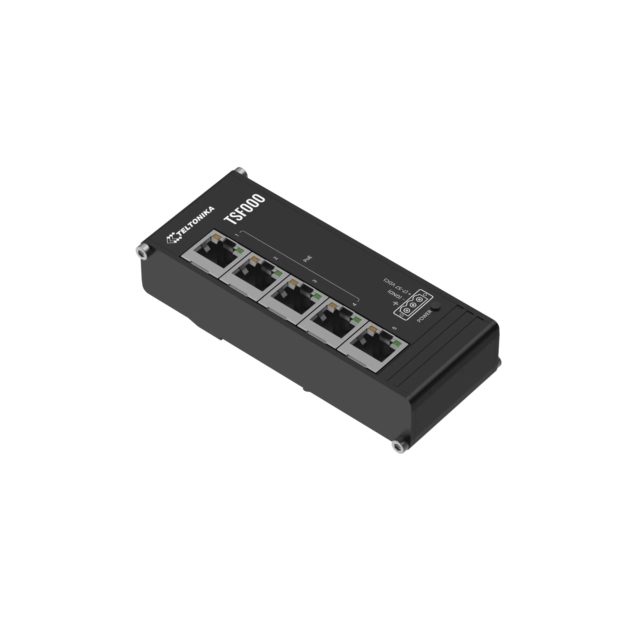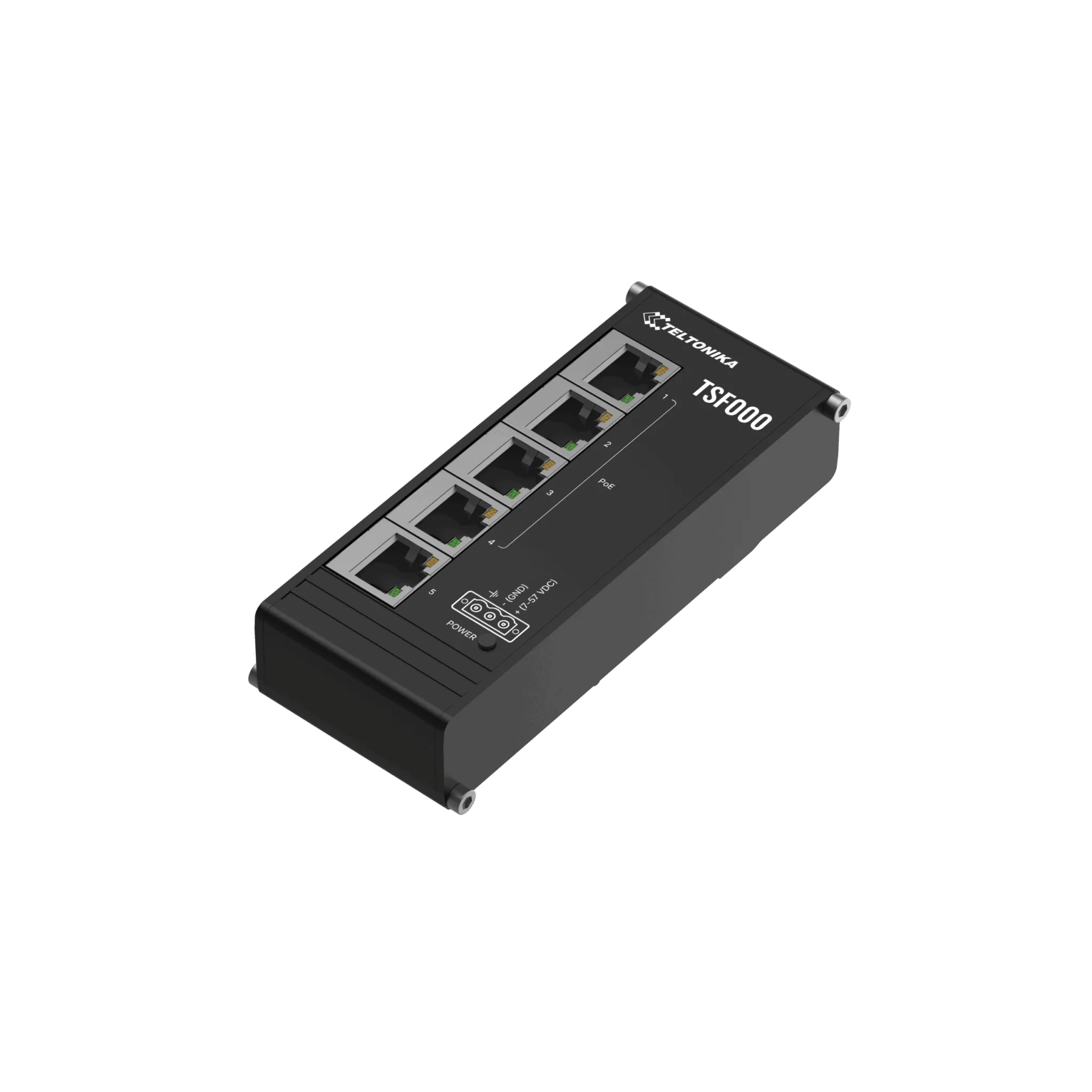 De Teltonika TSF000 is een compacte, unmanaged industriële Ethernet switch voor betrouwbare netwerkuitbreiding in schakelkasten en krappe installatieruimtes. Met 5 Fast Ethernet-poorten en 4 PoE+ uitgangen voed en verbind je in één keer apparatuur zoals IP-camera’s, access points en IoT-devices. Dankzij het PoE-budget tot 120W en de brede voedingsinput 7–57 VDC is de TSF000 geschikt voor uiteenlopende industriële toepassingen. De robuuste behuizing, DIN-rail montage en het brede temperatuurbereik maken hem ideaal voor 24/7 omgevingen.