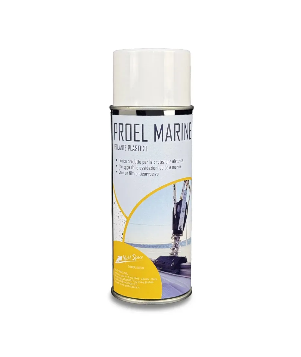 Proel Marine is een droge isolatiefolie op basis van geselecteerde acrylharsen, ontwikkeld voor het onderhoud van elektrische onderdelen en elektronische componenten. Het beschermt op lange termijn tegen oxidatie: klemmenblokken, koperen staven, aardingen, kabels, verbindingen, canon-aansluitingen, accuklemmen. Ideaal voor het plastificeren en beschermen van elektronische kaarten, aansluitingen van satelliettelevisies, radioapparatuur in boten, externe contacten enz. De film is gemakkelijk te verwijderen met aceton, trichloorethyleen of soortgelijke middelen.